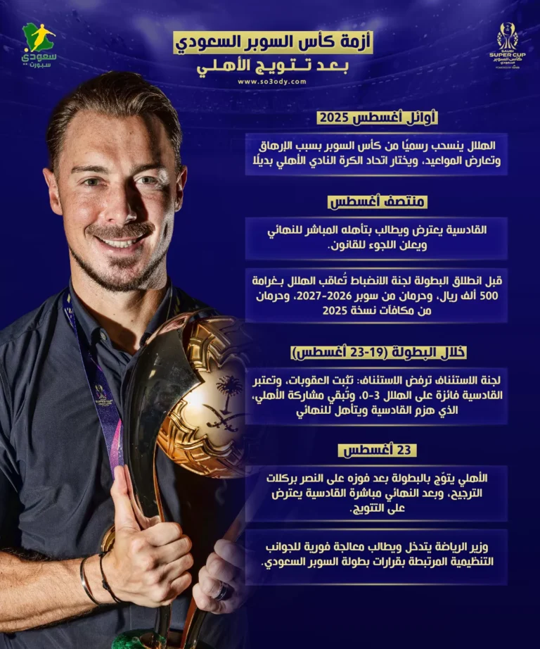 الرئيسية/أخبار الهلال السعودي اليوم أخبار الهلال السعودي اليوم اخبار النصر السعودي : نجم ريال مدريد يفتح ذراعيه للهلال .. “خلاف كبير ينقله إلى دوري روشن”اخبار الهلال السعودي : تغريدة تزلزل منصة “إكس”.. رد مثير من الوليد بن طلال حول “شراء الهلال”اخبار نادي الاتحاد السعودي : لجنة الاحتراف تواجه “حيلة” كبار دوري روشن بشأن “المواليد”.. تصريحات واضحة للجميعاخبار النصر السعودي : وكيل وزارة الرياضة يتحدث عن حسم أزمة السوبر وإجراءات إضافية “للتيفو” في الموسم الجديداخبار الهلال السعودي : “ضحية” بقاء ميتروفيتش مع الهلال.. إقصاء محترف خارج القائمة المحليةاخبار نادي الاتحاد السعودي : الاتحاد يتحرك نحو أهداف الهلال.. “صفقة عالمية” قادمة من الدوري الإسبانياخبار النصر السعودي : “حقيقة الدعم وميزانيات الأندية”.. الرابطة تصدم كبار روشن بتصريحات تزلزل الشارع الرياضياخبار الهلال السعودي : البليهي يتحكم في فريق الهلال .. “علامات استفهام على قرار الإطاحة بزميله”اخبار الهلال السعودي : هل يشارك ميتروفيتش في أولى جولات دوري روشن؟اخبار الهلال السعودي : ميتروفيتش يواصل التأهيل.. وعودته غامضةاخبار الهلال السعودي : استقالة لجنة الاستئناف بالكامل .. رد مبكر قبل اجتماع العموميةاخبار الهلال السعودي : أخبار الهلال اليوم | رين الفرنسي يرفض رحيل جاكيه .. وموجة رحيل اللاعبين تضرب “الزعيم”اخبار الهلال السعودي : “لا يدفع مثل الهلال”.. صدام ناري على الهواء حول ميزانية صفقات النصراخبار الاهلي السعودي : “سبب كل المشاكل”.. السهلي يفتح النار على الهلال ورد صادم من الحميدياخبار الهلال السعودي : 8 معلومات عن جاكيه مدافع الهلال المحتملاخبار النصر السعودي : بعد أزمة السوبر السعودي والحل المنتظر من اتحاد الكرة.. طلب مهم لعودة كحيلاناخبار الهلال السعودي : الشرق الأوسط: مدافع الهلال إلى نيوماخبار الهلال السعودي : لاعب الهلال ينتقل إلى نيوماخبار الهلال السعودي : أحدهما من جدة.. “منبوذ” الهلال يشعل المنافسة بين 3 أندية في الصيفيةاخبار الهلال السعودي : قبل النصر .. سبب فشل الهلال في ضم جواو فيليكساخبار الهلال السعودي : ظهير الهلال يثير اهتمام الأندية هذا الصيفاخبار الهلال السعودي : نيوم يخطط لخطف لاعب الهلال في الميركاتو .. “صخرة الدفاع”اخبار الهلال السعودي : الأمير نواف بن سعد يحسم ملف المفرجإنزاغي يصدم نجم الهلال قبل انطلاق مباريات الدوري السعودياخبار الهلال السعودي : “جوهرة” ستاد رين الفرنسي يفاجئ الهلال.. رد حاسم رغم العرض النهائياخبار الهلال السعودي : “مفاجأة” تنتظر الاستئناف عقب أزمة انسحاب الهلال من السوبر.. قرار نهائي من اتحاد الكرةاخبار الهلال السعودي : الهلال يضغط بقوة لحسم صفقة مرعبة من الدوري الإيطالي .. “صديق إنزاعي”اخبار الهلال السعودي : تلميحات هروب الهلال وسخرية الأهلي من النصر .. السوبر يفجر صراع الحسابات الرسمية لكبار روشناخبار الهلال السعودي : الهلال يغلق ملف البليهي نهائيا .. الكلمة الأخيرة لإنزاجياخبار نادي الاتحاد السعودي : “إعادة السوبر السعودي وحل لجنة الانضباط” .. قرارات ثورية منتظرة تزلزل الشارع الرياضياخبار الاهلي السعودي : خاص سعودي سبورت | ستاد رين الفرنسي ينهي جدل رحيل نجمه إلى الهلالاخبار الهلال السعودي : توقع مثير بشأن بطل دوري روشن 2025/26اخبار الهلال السعودي : الهلال ورط المسحل وتدخل الوزارة يمهد لتجريد الأهلي وإعادة النهائياخبار الهلال السعودي : هلال 2026 في خطر! – هاي كورةاخبار الهلال السعودي : الهلال يشعل ميركاتو الصيف .. تطورات جديدة في صفقة ستاد رين الفرنسياخبار الهلال السعودي : الهلال تحت الضغط.. عقوبات مضاعفة وإجراءات عاجلة بعد تدخل رئيس اللجنة الأولمبيةاخبار الهلال السعودي : الهلال يضحي بنجم الفريق في الصيفية .. “صدمة كبرى”موقف نهائي كأس السوبر السعودي بعد اعتبار الهلال خاسرًا أمام القادسية (3-0)اخبار الهلال السعودي : سجل أبطال كأس السوبر السعودي.. 