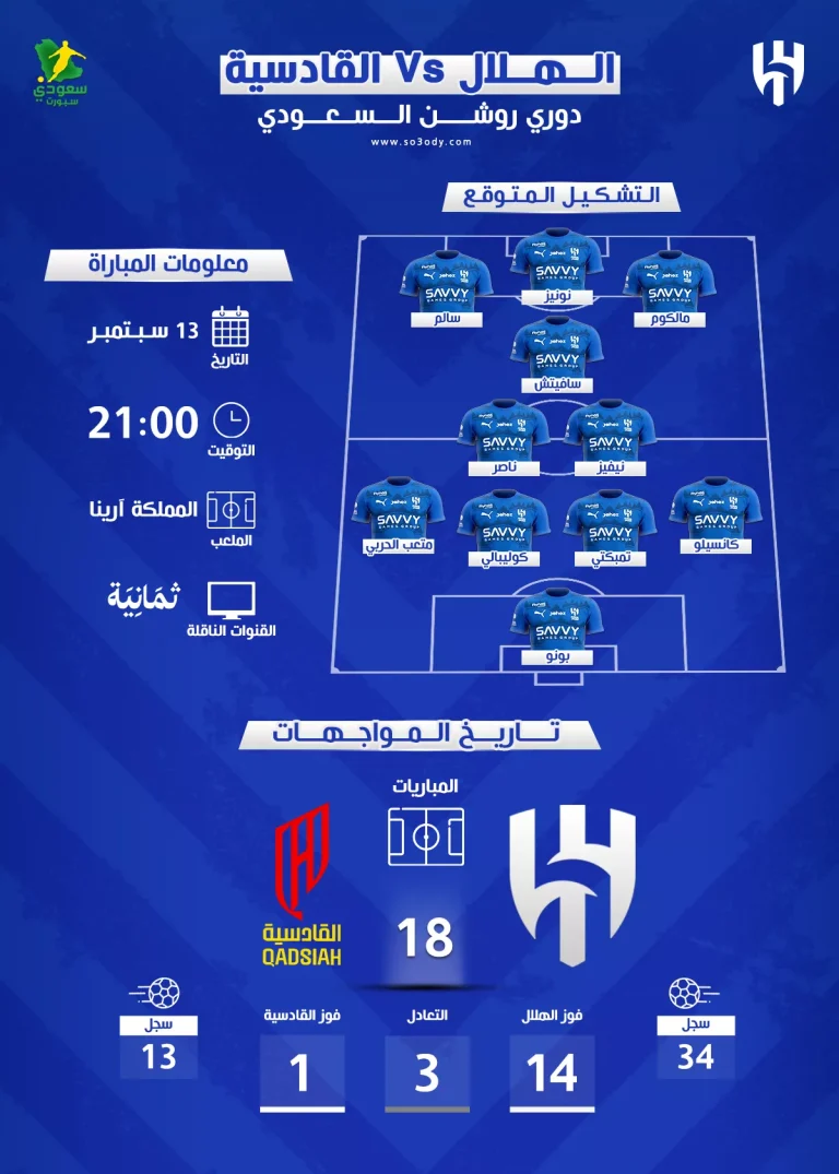 اخبار الهلال السعودي : موعد مباراة الهلال والقادسية في دوري روشن 2025-2026 والقنوات الناقلة والتشكيل المتوقع
