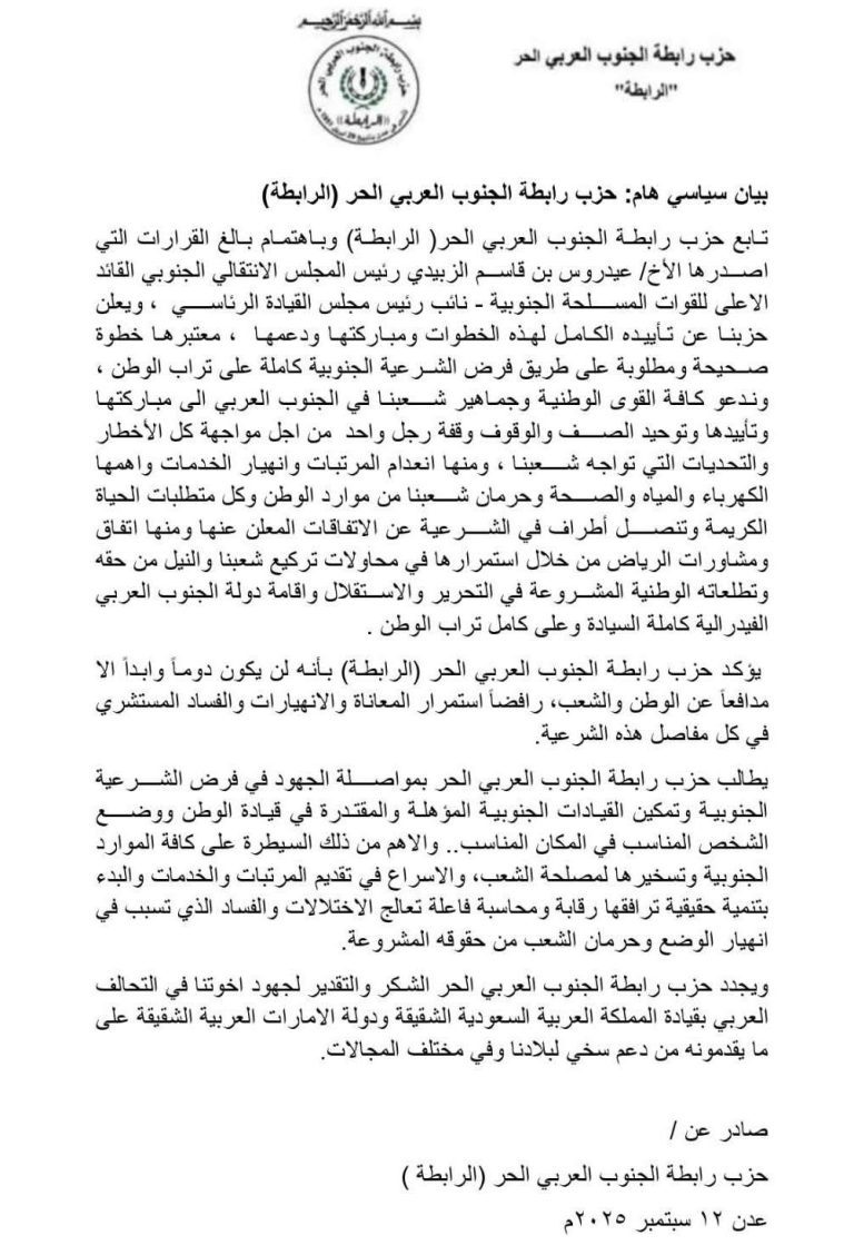 الرئيسية/أخبار عيدروس الزبيدي أخبار عيدروس الزبيدي بغياب عيدروس الزبيدي.. اجتماع للمجلس الرئاسي يُقر خططا لدمج الأجهزة الأمنية والاستخباريةالرئيس عيدروس الزُبيدي من الاحتفالات الوطنية إلى كواليس الدبلوماسية الدوليةاخبار اليمن : الإدارة الأمريكية تناقش عيدروس الزُبيدي في أبوظبي أبرز ما تم إنجازه حول تنسيق مواقف مجلس القيادة الرئاسيإلغاء قرارات لعيدروس الزبيدي واتفاق بمنعه من اتخاذ قرارات أحادية أو التدخل بصلاحيات رئيس الوزراء (تفاصيل)أول مديريات الضالع تشهد احتجاجات رافضه للظلم والتهميش المتعمد لأبنائها وتطالب اللواء عيدروس الزبيدي بالتدخل .. صوراخبار اليمن | الرئيس عيدروس الزُبيدي يلتقي برجل الأعمال الكبير الشيخ محسن القشمشاهد صورة اللواء عيدروس الزبيدي اثناء زيارة والدة القيادي صلاح الشنفرةمن هو الطفل الذي أحتضنه عيدروس الزبيدي في الشعيب بالضالع بعد أن القى كلمة أذهلت الجميع ؟ .. الإسم والصورةاخبار اليمن | اللواء عيدروس الزُبيدي يصل إلى مديرية الشعيب بالضالع لافتتاح مدرسة الشيخ محمد بن زايدالضالع : عيدروس الزبيدي يفتتح مجمعي الشيخ محمد بن زايد التربويين في الأزارق و جحافعيدروس الزبيدي يوجه رسالة لأبناء المحافظات الشمالية ..ماذا جاء فيها ؟صحفي بارز يتوقع أن يكون عيدروس الزبيدي في أعلى هرم السلطة قريباًالمجلس الانتقالي الجنوبي في اليمن يتعهد بمواجهة الحوثيين (صور)الضالع تحتفل بذكرى 14 اكتوبر بحشود كبرى وبحضور عيدروس الزبيدي .. صورالانتقالي يترنح .. تغريدات جديدة لهاني البيض تنسف سردية ”دولة الجنوب” وآخر ما قاله أفقد أنصار عيدروس صوابهم!من هي قيادات مأرب وتعز التي طلبت من عيدروس الزبيدي الانضمام لـ”دولة الجنوب العربي”؟اخبار اليمن : خارج السرب.. عيدروس الزبيدي يتحدث عن ضم مناطق في تعز ومأرب للجنوب ودولة مُطبعة مع إسرائيل حدودها تتجاوز ما قبل عام 1990عيدروس الزبيدي يفجر مفاجأة بشأن شكل الدولة القادمة.. لن تكون شمالًا وجنوبًا وهذا مصير مارب وتعزكيف يرسم الرئيس القائد عيدروس الزبيدي ملامح الدولة الجنوبية القادمة؟عيدروس الزبيدي يطمئن على صحة رئيس مجلس النواب سلطان البركاني”عيدروس الزبيدي” وحسم الجدل بشأن إعدام الجندي الذي اختطف زميلتهعيدروس الزبيدي يفجر مفاجأة: لن نطيح بالحوثيين وهذا سبب قراراتي الأخيرة!اخبار اليمن : عيدروس الزبيدي.. بين فضيحة التطبيع مع اسرائيل مقابل الإنفصال وحديثه عن الذكاء الإصطناعيمعركة سياسية ودبلوماسية يقودها الرئيس القائد " عيدروس الزُبيدي"عيدروس الزُبيدي.. قائد الجنوب وصانع التوازن وباني المستقبلاخبار عدن | منسقية الانتقالي بكلية العلوم الإدارية بجامعة عدن تعلن تأييدها لقرارات اللواء عيدروس الزبيديقرارات الرئيس القائد عيدروس الزُبيدي مؤخرًا تصويب لآلية اتخاذ القرار في مجلس القيادة الرئاسياخبار اليمن : أسماء الفريق القانوني المكلف بمراجعة قرارات المجلس الرئاسي وتعيينات عيدروس الزبيدي غير القانونيةاخبار عدن | تكريم منتظر لرجل المرور جميل سالم عيدروس نظير جهوده في خدمة المجتمع بعدناخبار اليمن : العميد طارق صالح ينتقد قرارات عيدروس ويحذر من التفرد بالقرار: وحدة مجلس القيادة ضمانة للانتصار على الانقلابإصلاحات رئيس الوزراء وقرارات ”عيدروس الزبيدي” وخطوة سعودية حاسمةأمن عدن يقف أمام الانعكاسات الإيجابية لزيارة الرئيس عيدروس الزُبيديمجلس وزارة الشؤون الإجتماعية والعمل يبارك قرارات الرئيس القائد عيدروس الزبيديرسمياً .. تعرف على الحقيقة الكاملة بشأن المشادة بين اللواء سلطان العرادة واللواء عيدروس الزبيدياخبار اليمن : عناصر الإنتقالي تقتحم مكتب نائب وزير الإعلام وتسلمه لآخر عينه عيدروس بقرار غير شرعياخبار اليمن : عاجل.. عيدروس الزبيدي يغادر عدن فجأة برفقة رئيس اللجنة العسكرية إلى أبوظبياخبار اليمن : وزير في الحكومة اليمنية يبارك ويؤيد انقلاب عيدروس الزبيدي وإصداره عدداً من القرارات خارج صلاحياتهوزير 