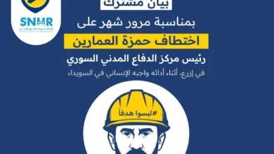 الشبكة السورية والخوذ البيضاء: شهر على اختطاف حمزة العمارين ودعوة عاجلة للإفراج الفوري × أصدرت الشبكة السورية لحقوق الإنسان ومنظمة…