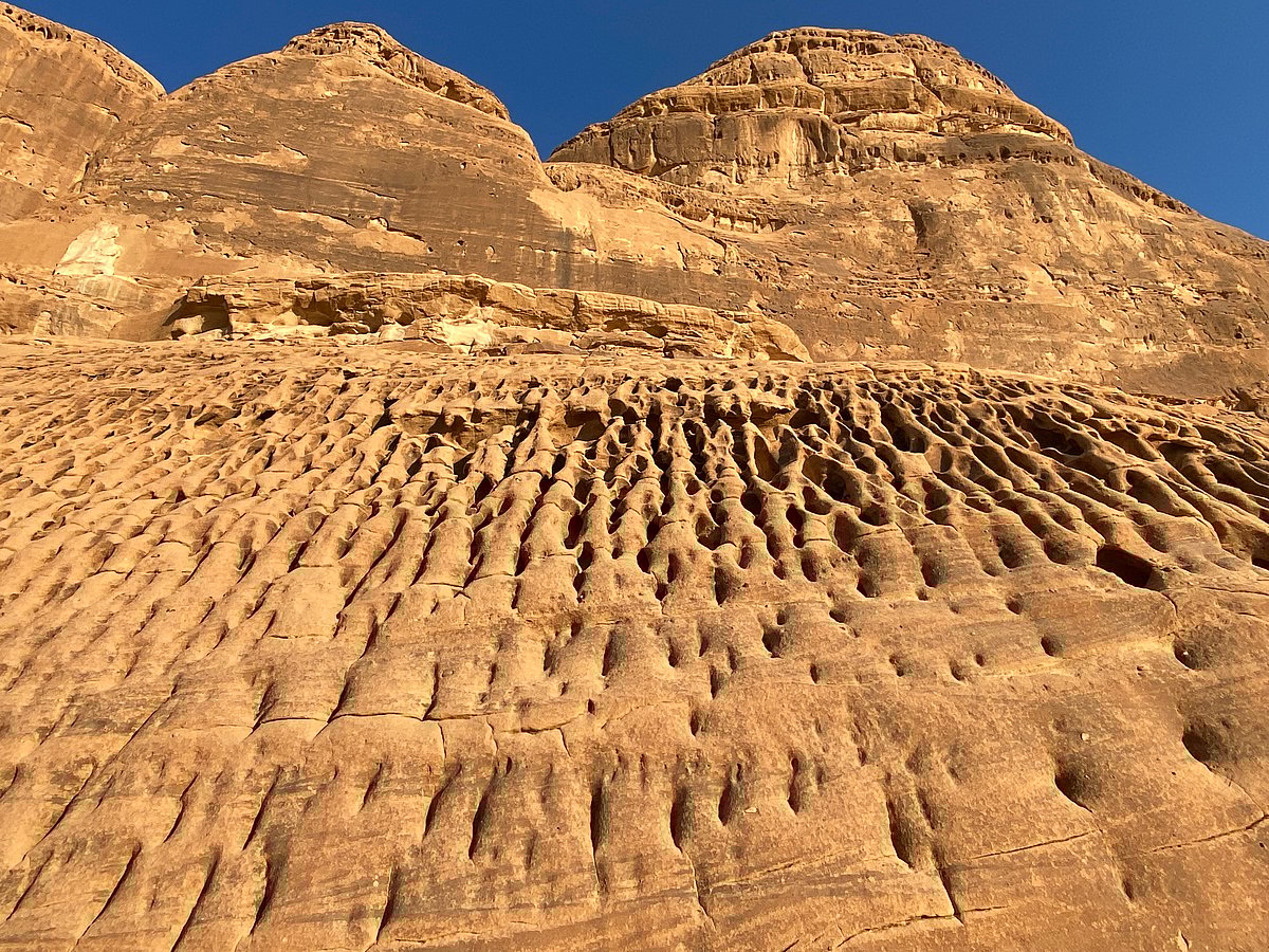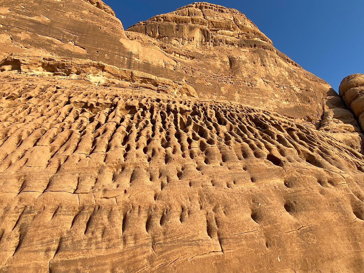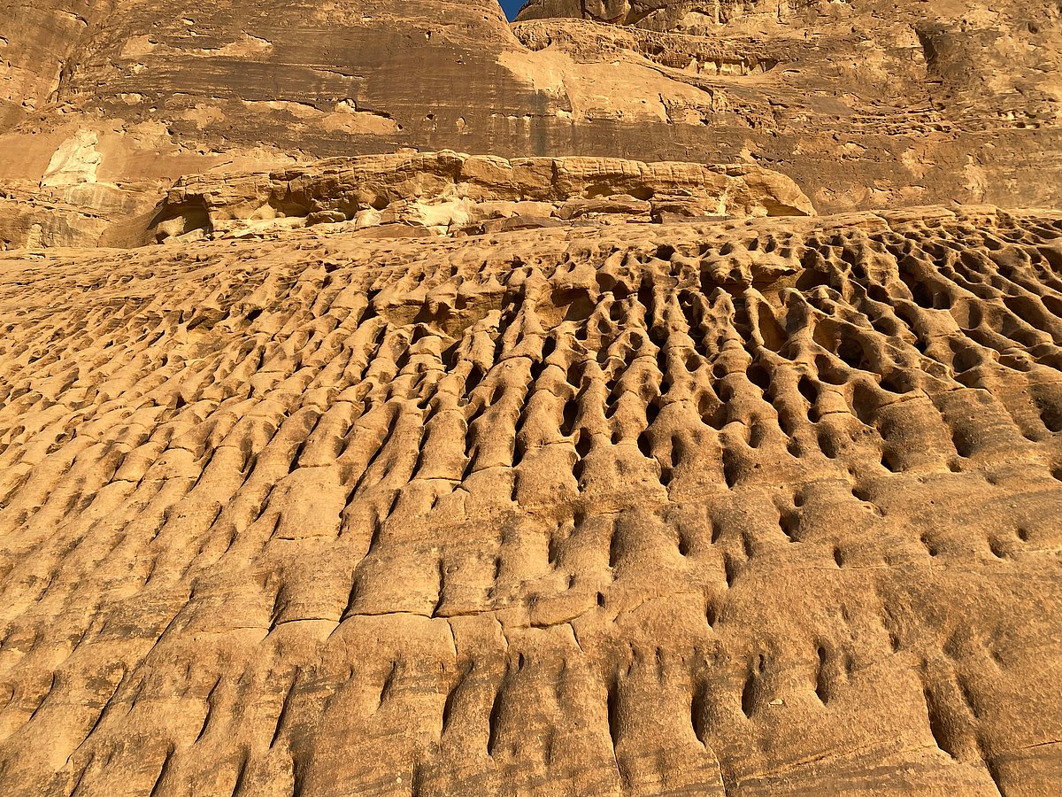 يثير جبل أثلب في الحجر بمحافظة العلا فضول الزائرين بواجهاته الصخرية المليئة بثقوب دقيقة تبدو كأنها منحوتة بعناية، هذه التشكيلات الطبيعية المثيرة تُعرف باسم “التافوني”، وهي إحدى الظواهر الجيولوجية المدهشة التي تميّز صخور الحجر الرملي في العلا .