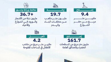 وأوضحت الأمانة أن الأعمال المنفذة شملت تركيب 858 عامود إنارة في الميادين والطرق، بالإضافة إلى تمديد 31 ألف متر طولي من الكابلات الكهربائية.