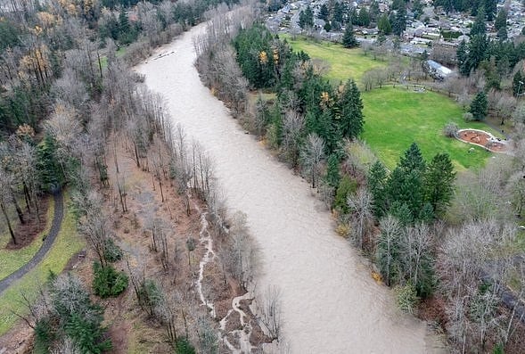 Residents along the Green River in Auburn are using canoes to get around their property. Thankfully, a neighbor tells me the water hasn’t come inside their home.