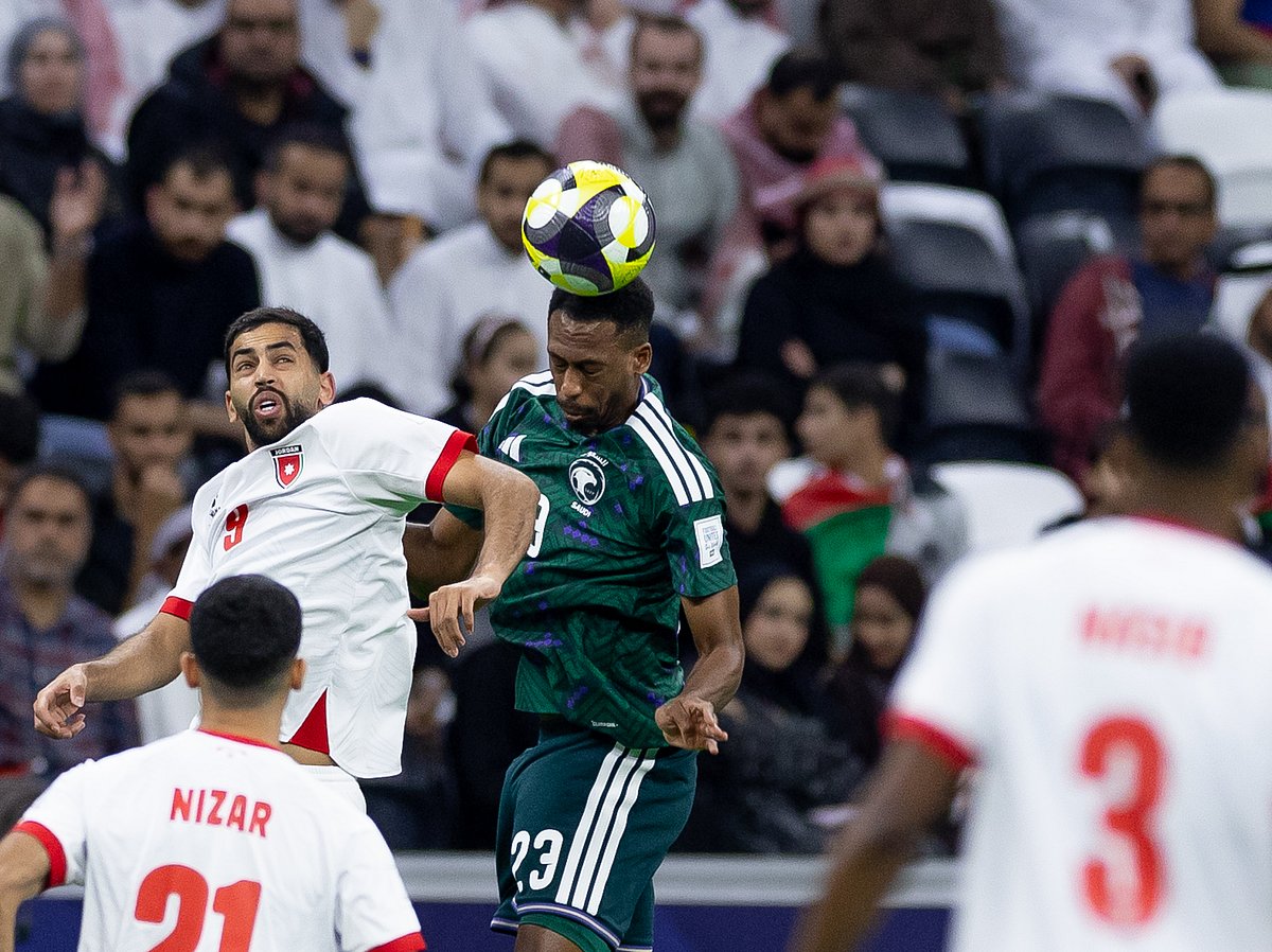 وشهدت الدقيقة 66 تقدم الأردن بهدف أول من خلال رأسية نزار الرشدان، وسط خطأ من دفاع الأخضر في التغطية وإبعاد الكرة عن منطقة الخطر.