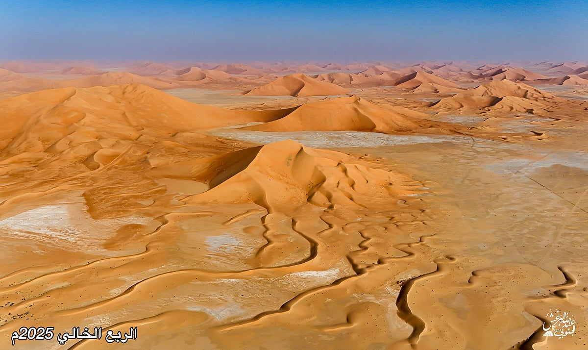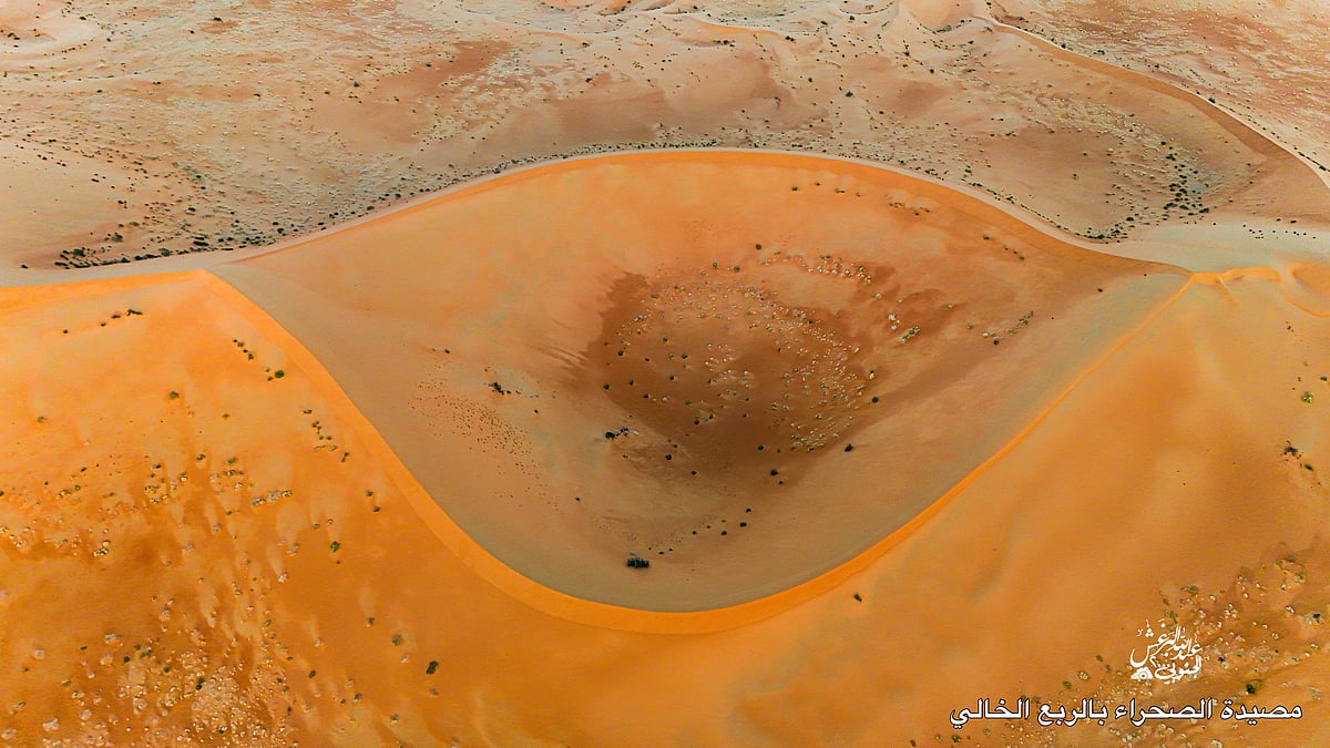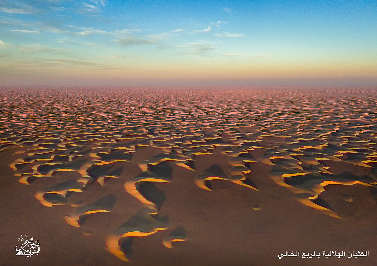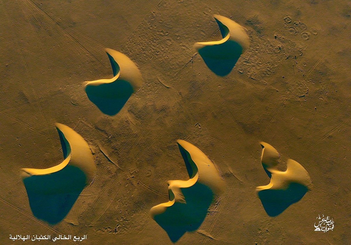 في مشاهد جوية نادرة، وثّق المصوّر عبدالله البرغش بعدسة كاميرته الطائرة لوحات جمالية ساحرة من عمق صحراء الربع الخالي، أكبر صحراء رملية متصلة في العالم، والتي تقع في الثلث الجنوبي الشرقي من شبه الجزيرة العربية، ويقع الجزء الأكبر منها داخل أراضي المملكة العربية السعودية.