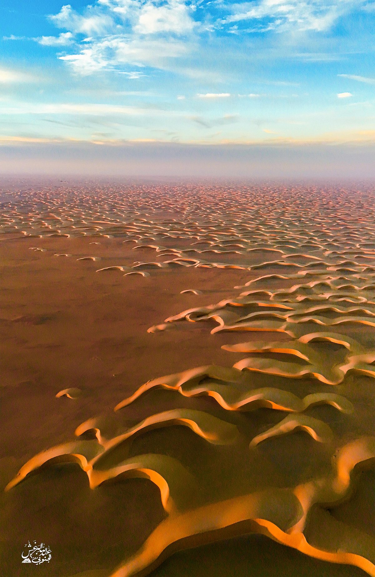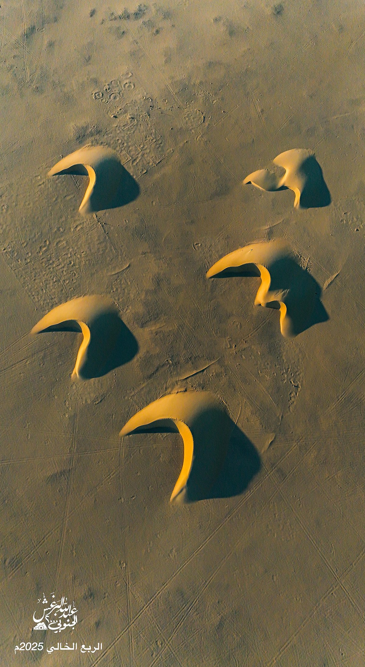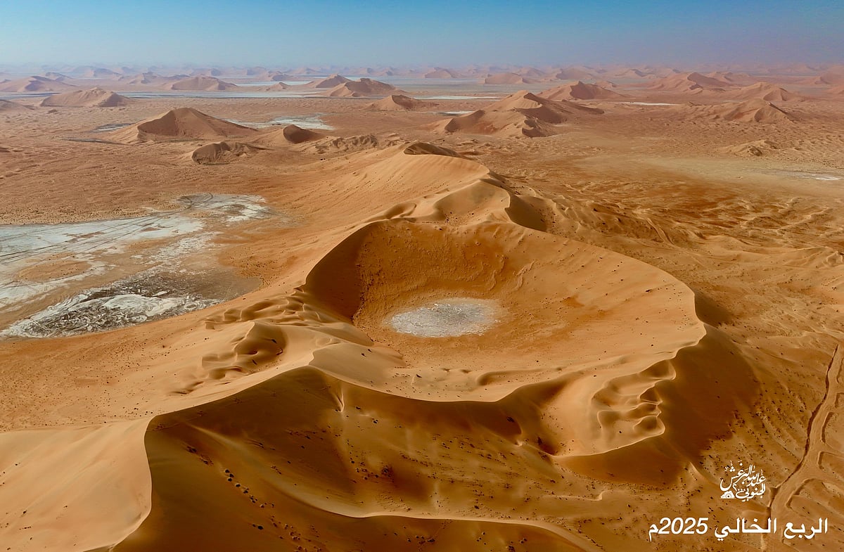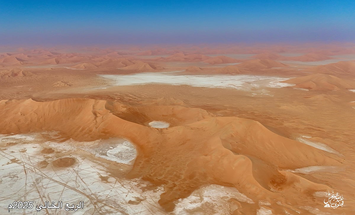 في مشاهد جوية نادرة، وثّق المصوّر عبدالله البرغش بعدسة كاميرته الطائرة لوحات جمالية ساحرة من عمق صحراء الربع الخالي، أكبر صحراء رملية متصلة في العالم، والتي تقع في الثلث الجنوبي الشرقي من شبه الجزيرة العربية، ويقع الجزء الأكبر منها داخل أراضي المملكة العربية السعودية.
