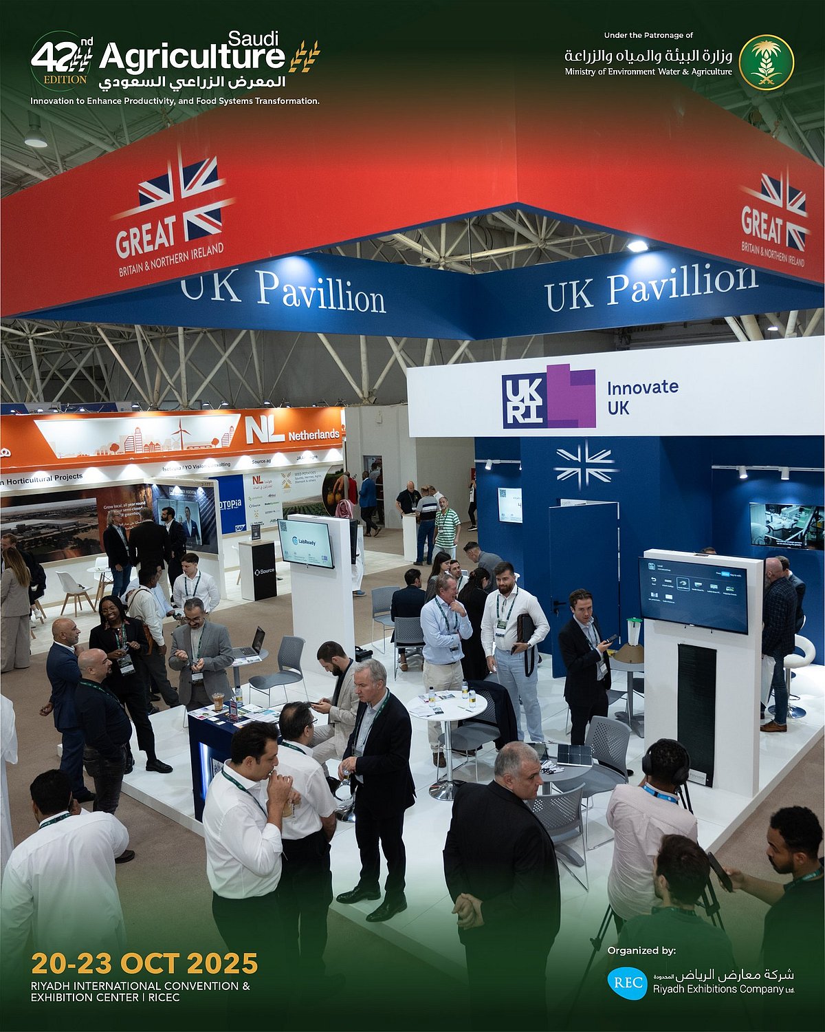 اختُتمت أمس الخميس فعاليات النسخة الـ42 من المعرض الزراعي السعودي 2025، الذي أُقيم على مدى أربعة أيام في مركز الرياض الدولي للمؤتمرات والمعارض، بمشاركة 446 جهة من 34 دولة، بينها 11 جناحًا رسميًا غطّت مختلف قطاعات الإنتاج النباتي والحيواني والسمكي، والتقنيات الزراعية الحديثة.