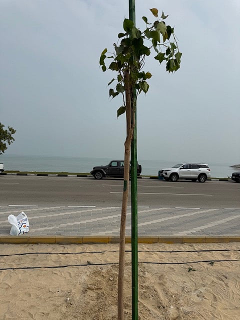 وشارك الزميل حامد العلي من “سبق” في غرس إحدى الأشجار على كورنيش الصدفة، وقد حُملت الشجرة لوحة كُتب عليها: “زُرعت الشجرة بالتعاون مع صحيفة سبق”.