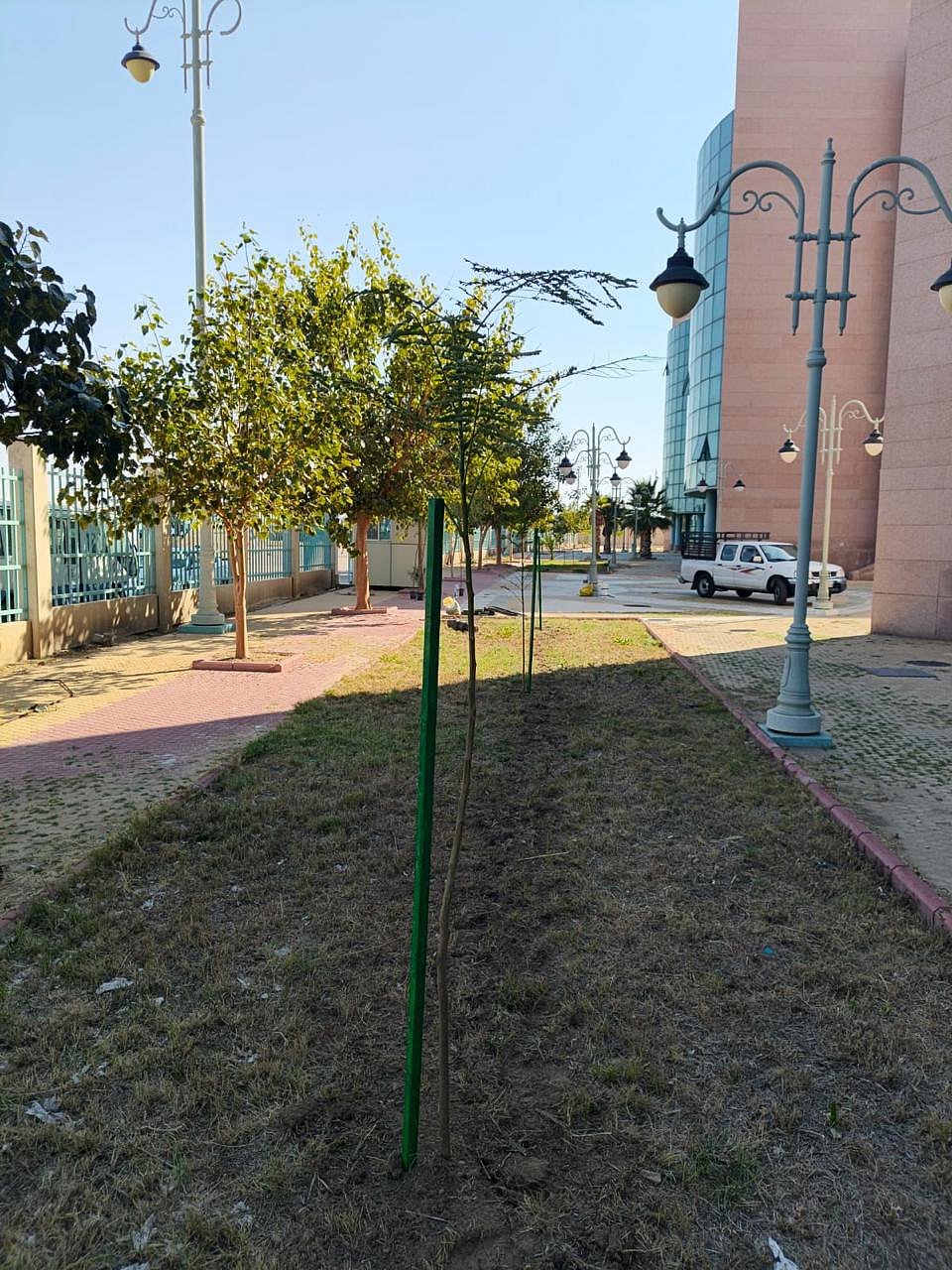 وشملت أعمال التشجير ساحات شطر الطالبات، ومجمع الأمير سلطان الطبي، وساحات الجامع، إضافةً إلى توزيع شتلات على الطلاب والطالبات لغرسها في منازلهم، في خطوة تُعزّز الوعي البيئي والمشاركة المجتمعية.