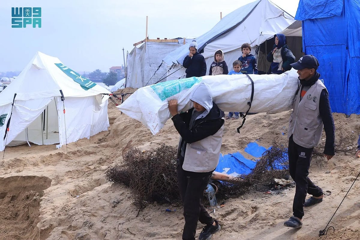 وفي جنوب قطاع غزة، نفّذ المركز تدخلات إغاثية ميدانية عاجلة لصالح الأسر النازحة في المخيمات المتضررة من المنخفض الجوي، بالتعاون مع المركز السعودي للثقافة والتراث. وشملت التدخلات تثبيت الخيام وحمايتها، وتوفير خيام بديلة، ومعالجة تجمعات المياه، إلى جانب متابعة أوضاع العائلات الأكثر احتياجًا، ولا سيما النساء والأطفال وكبار السن. وأعربت الأسر المستفيدة عن امتنانها للدعم الإنساني الذي قدّمته المملكة في ظروفهم القاسية.