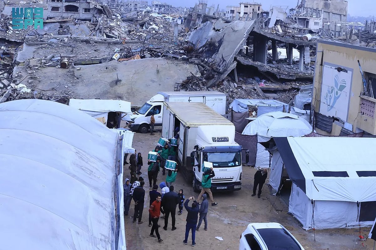 يُذكر أن المملكة، ممثلة بمركز الملك سلمان للإغاثة، سيّرت جسرين جويًا وبحريًا، شمل حتى الآن 77 طائرة و8 بواخر، نقلت أكثر من 7,699 طنًا من المواد الغذائية والطبية والإيوائية، إلى جانب 912 شاحنة وصلت إلى القطاع، و20 سيارة إسعاف سُلّمت لجمعية الهلال الأحمر الفلسطيني.