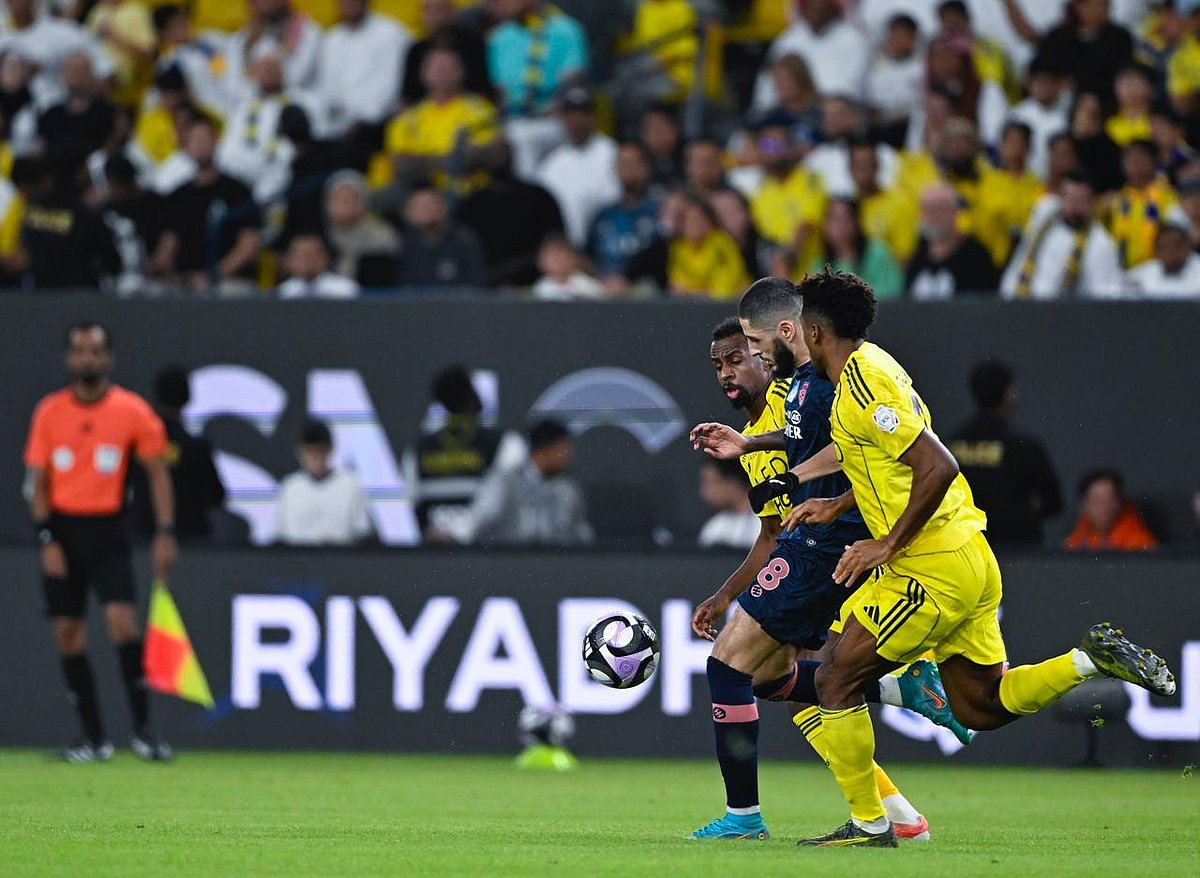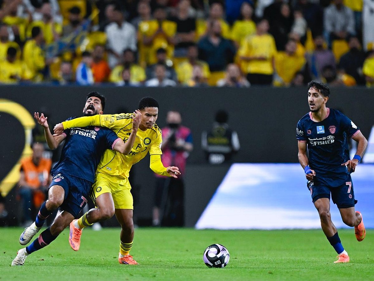 وتمكّن قائد النصر كريستيانو رونالدو من تعديل النتيجة في الدقيقة 37 بعد تمريرة مثالية من زميله كومان. وشهد الشوط تألق حارس الفيحاء موسكيرا الذي تصدّى لعدة محاولات خطيرة من جواو فليكس ورونالدو وساديو ماني.