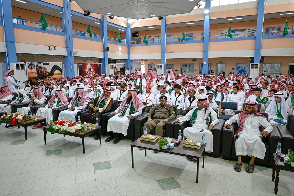 واستهل الحفل بكلمة مدير المدرسة الأستاذ عبدالله الحديبي، الذي أكد أن اليوم الوطني محطة تاريخية نستذكر فيها جهود الملك المؤسس عبدالعزيز – طيب الله ثراه – في توحيد البلاد، وما تحقق من إنجازات كبرى في عهد القيادة الرشيدة، مشيراً إلى أن التعليم شريك أساسي في تعزيز الوعي الوطني لدى الأجيال.