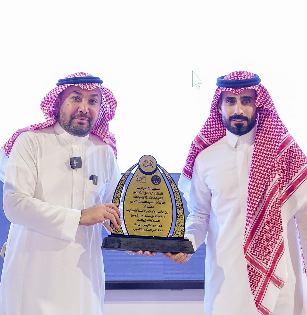 وقدّم الدكتور الشادي قراءات شعرية من قصائده الوطنية والوجدانية، جسّدت روح الانتماء والفخر بمنجزات الوطن، واستحضرت في مضامينها قيم العطاء والولاء، في ظل ما تشهده المملكة من نهضة شاملة في مختلف المجالات.