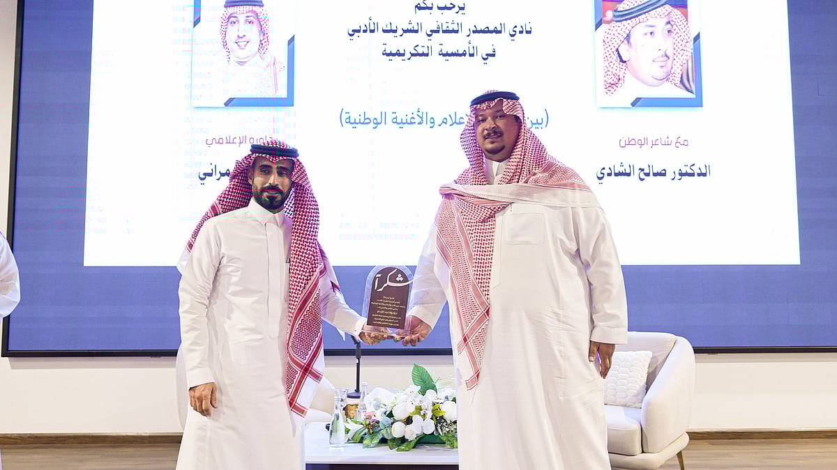 نظّم “نادي المصدر الثقافي”، الشريك الأدبي لهيئة الأدب والنشر والترجمة بمنطقة تبوك، أمسية ثقافية بعنوان “بين الأدب والإعلام والأغنية الوطنية”، استضاف خلالها الشاعر الدكتور صالح الشادي، وذلك في مركز الاحتفالات والمؤتمرات بأمانة تبوك، بحضور نخبة من الإعلاميين والمهتمين بالأدب والثقافة.