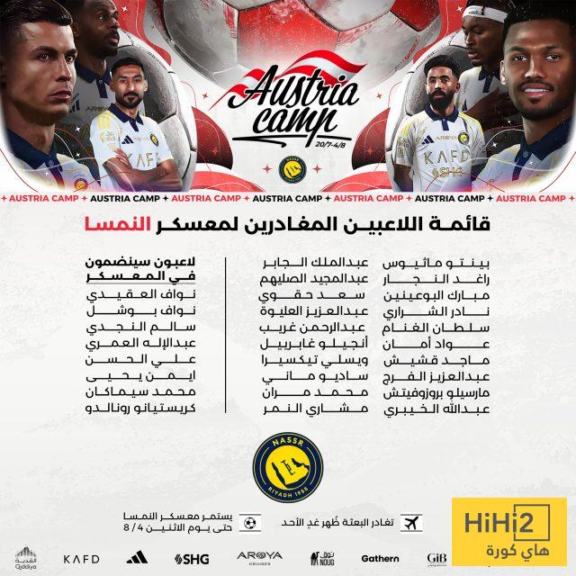 هاي كورة: تغادر بعثة نادي النصر، ظهر اليوم الأحد، إلى النمسا من أجل الدخول في معسكر إعدادي، استعدادًا للموسم المقبل 2025-2026.