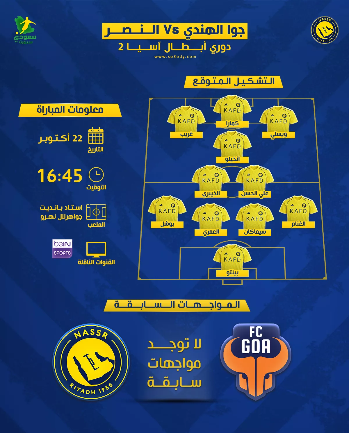 اخبار النصر السعودي : موعد مباراة النصر وغوا الهندي في دوري أبطال آسيا 2025-26 والقنوات الناقلة والتشكيل المتوقع
