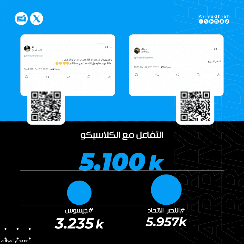 ومن بين المتفاعلين، طالبَ المغرد فهد بأن ينصبَّ تركيز لاعبي فريق الاتحاد على إغلاق المساحات أمام البرتغالي جواو فيليش، نجم النصر: «المباراة صعبة، ولكن ليست مستحيلةً، فقط تحتاج إلى تركيز اللاعبين، ومشاركة رايكوفيتش ضرورية، والتقفيل على عناصر القوة لفريق النصر وأهمهم فيليش وساديو، وقطع الكور عن رونالدو. هل بنشوف هذا الشي ولا لا». وتجاوب معه أحمد: «تعطيل خطورة فيليش تعني الفوز.. في حال قدروا يوقفونه بيفوز الاتحاد.. هذا اللاعب ورقة النصر الرابحة».