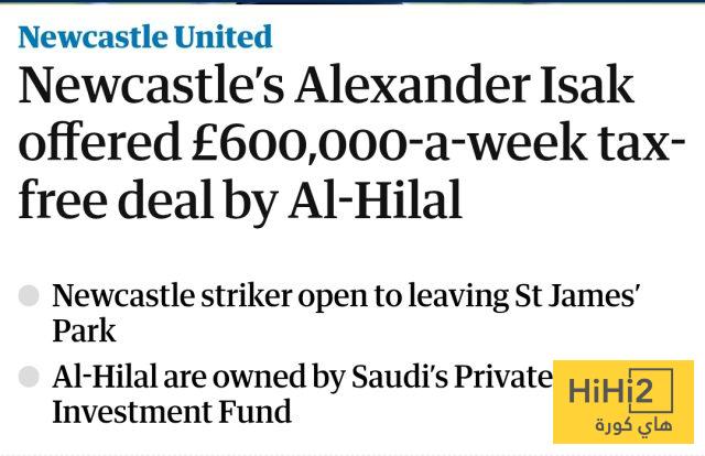 وفقًا لما أوردته صحيفة “الغارديان”، فإن الهلال عرض على إيزاك راتبًا أسبوعيًا معفى من الضرائب بقيمة 600 ألف جنيه إسترليني، بالإضافة إلى المكافآت.