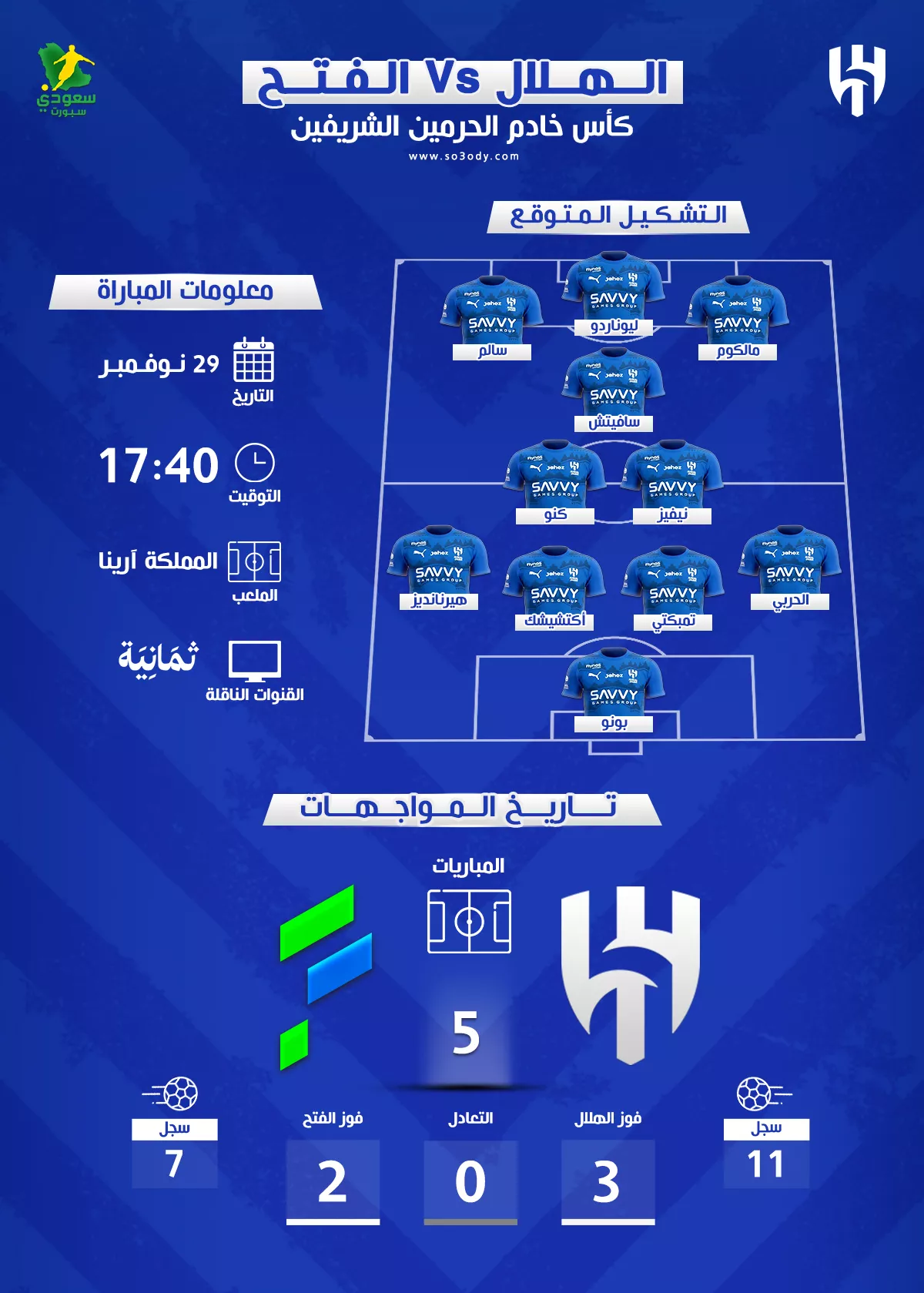 اخبار الهلال السعودي : موعد مباراة الهلال والفتح في كأس الملك والقنوات الناقلة .. التشكيل المتوقع