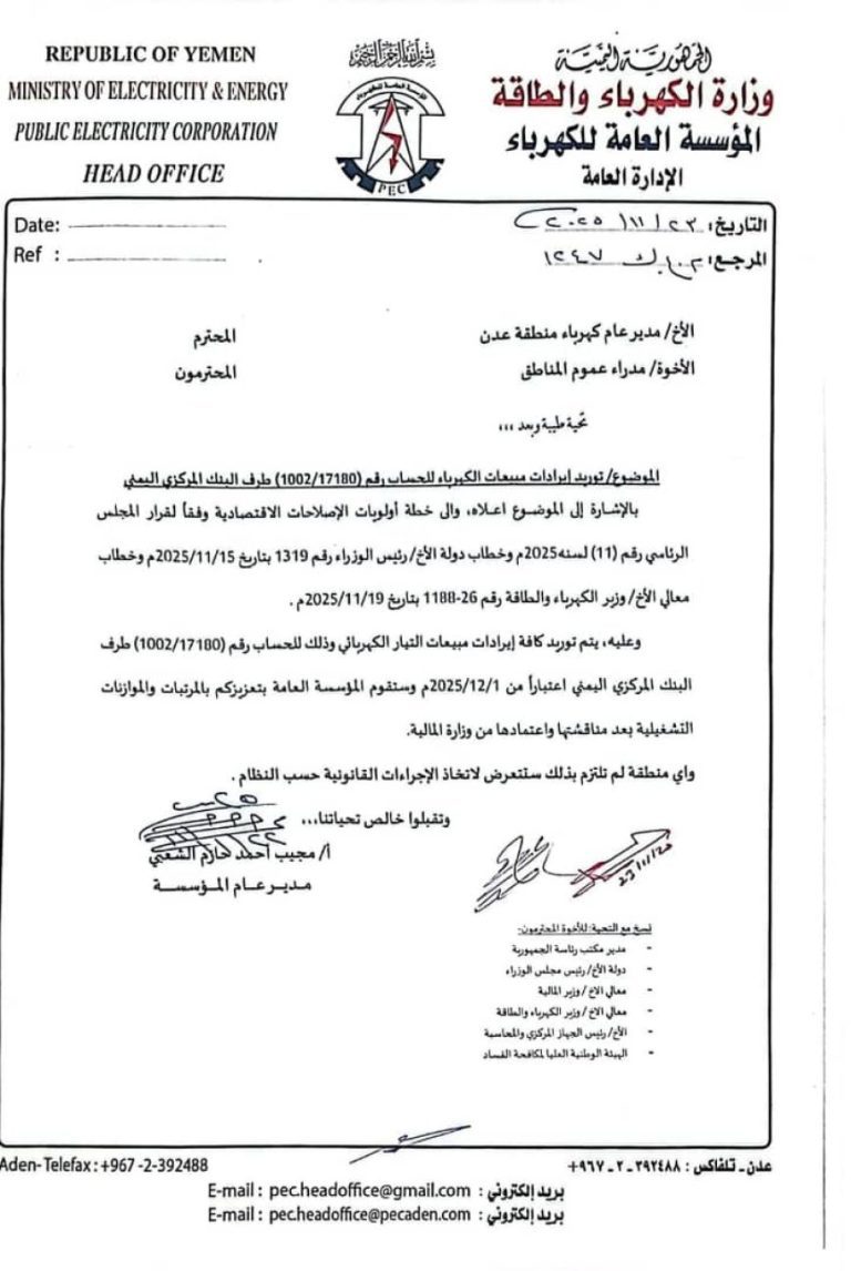 الرئيسية/الريال اليمني الريال اليمني اخبار عدن | حادثة خطيرة في التواهي.. تخريب متعمد لشبكات الصرف الصحي يهدد الخدمات الأساسيةاخبار عدن | باخبيرة وعواس ينفذان نزولًا ميدانيًا لمعالجة مشكلة طفح مياه الصرف الصحي في القرية الروسية بخورمكسراخبار عدن | أسعار صرف العملات الأجنبية في عدن وصنعاء اليوم الخميستوجيهات عليا بتوريد إيرادات الكهرباء إلى البنك المركزي ومحاسبة المخالفين "وثيقة"توجيهات رسميه بتوريد إيرادات الكهرباء إلى البنك المركزي اليمني في عدناخبار عدن | الزهري يتفقد سير العمل في مشروع إعادة تأهيل محطات الصرف الصحيإغلاق شركتي صرافة في صنعاء: هل يُعيد الحوثيون سيناريو ”ابتزاز رجال الأعمال” من جديد؟اخبار عدن | وزارة الزراعة والثروة السمكية تبحث في عدن إجراءات عاجلة لضبط أسعار الأسماك واستقرارها في الأسواقاجتماع بعدن يناقش تنظيم أسعار الأسماكاخبار عدن | تعرف على أسعار الصرف وبيع وشراء العملات الأجنبية اليوم الثلاثاءاخبار عدن | أهالي الممدارة يشكون ارتفاع أسعار بوز الماءاخبار عدن | الريال اليمني يواصل الاستقرار أمام العملات الأجنبيةاخبار عدن | تنفيذي المنصورة يناقش تقارير الصرف الصحي ولجنة مجلس الآباء بمدارس المديريةإقبال جماهيري غير مسبوق على ”عجائب الصين” بعدن.. تخفيضات نهاية العام تشعل المنافسة على السلععشرات الاسر في مقيبرة بلحج تواجه خطر التلوث بسبب تراكم مستنقعات الصرف الصحياخبار اليمن : البنك المركزي يختتم دورته التاسعة ويؤكد دعمه الكامل لمسار الإصلاحات المالية والاقتصاديةمجلس البنك المركزي يؤكد مساندته لجهود الحكومة لتعزيز مسار الإصلاحاتأسعار الأسماك اليوم الاربعاء فى عدن 26 نوفمبر 2025ممحافظ البنك المركزي يبحث مع السفير الروسي تعزيز التعاون المالي والاقتصاديالبنك المركزي يوضح حقيقة المستحقات المالية لمحافظهاخبار اليمن : البنك المركزي ينفي مزاعم صرف مستحقات مالية للمحافظ ويكشف الحقائقالبنك المركزي اليمني يكذب ”مزاعم كاذبة” حول راتب المحافظالبنك المركزي اليمني ينفي المزاعم التي يروج لها بشأن المستحقات المالية لمحافظهشلل تام في أسواق كريتر التجارية بعد إضراب واسع لأصحاب المحالأسعار صرف العملات الأجنبية في اليمن اليوم الثلاثاءاخبار عدن | بدء العمل على تصفية مناهل وشبكة الصرف الصحي في القرية الروسية بخورمكسراخبار اليمن : أسعار شراء وبيع الدولار والسعودي في اليمنأسعار الأسماك اليوم الجمعة فى عدن 21 نوفمبر 2025ممحكمة الأموال العامة تدين متهمين بمزاولة الصرافة دون ترخيص وتعوّض البنك المركزيتحسن وهمي للأسعار والوضع المعيشي بعد تحسن الريال اليمني في عدنارتفاع جديد في أسعار البيض بعدن.. تجار التجزئة يشكون "حجة البرد" واتهامات برفع غير مبررنائب محافظ البنك المركزي يناقش نتائج مشروع تعزيز القدرة على الصمود الاقتصادينقابة الصرافين الجنوبيين تخاطب البنك الدولي في أمر هامالرئيس العليمي يعود إلى عدن برفقة رئيس الوزراء ومحافظ البنك المركزيأسعار صرف العملات الأجنبية مقابل الريال اليمني عقب الوديعة السعودية للبنك المركزياليمن يتلقى دعماً سعودياً بقيمة 90 مليون دولار تم ايداعه في حسابات البنك المركزيمليشيا الحوثي ترفع أسعار السلع الأساسية بعد زيادة الجباياتشاب يعيش وسط الصرف الصحي في عدن ومطالبات بتدخل فوري لإنقاذهاخبار عدن | مطالبات شعبية بحملة رقابية شاملة لضبط أسعار السلع بعد ارتفاعهاسعر صرف الدولار والريال السعودي في اليمن اليوم السبتأسعار الأسماك اليوم السبت فى عدن 15 نوفمبر 2025مالمكتب التنفيذي لمحافظة حضرموت يتخذ قراراً بشأن التوريد إلى البنك المركزي بعدنالبنك المركزي يوقف ترخيص منشأة للصرافة ويغلق مقرها لمخالفاتها الماليةالبنك المركزي اليمني يوقف منشأة صرافة ويغلق مقرها في عدنمحافظ البنك المركزي يصدر قرار بسحب ترخيص منشأة بكين للصرافة وإغلاق مقرهااخبار اليمن | وفد البنك الدولي يطلع على سير العمل في مشروع محطة ضخ ال