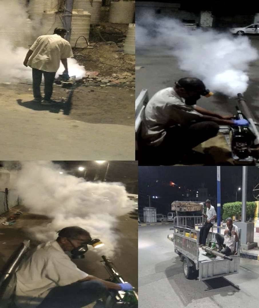 في إطار الجهود المبذولة للحفاظ على صحة المواطنين والحد من انتشار الأوبئة، يستمر قسم صحة البيئة بمديرية التواهي، حملة رش ضبابي شاملة استهدف كافة أحياء مديرية التواهي ، وذلك للقضاء على الحشرات الناقلة للأمراض بما فيها حمى الضنك والملاريا.