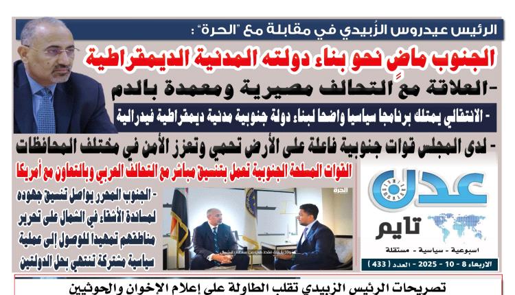 تصفح صحيفة عدن تايم بعددها رقم 433 الالكتروني .