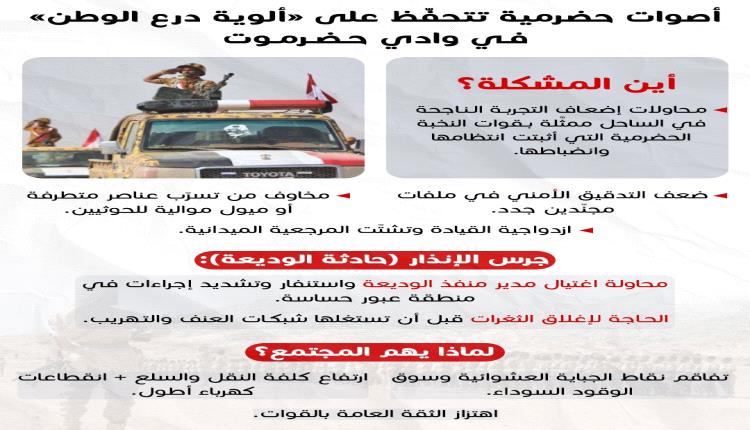 تتصاعد في الأوساط الحضرميّة أصواتٌ متحفظة على استمرار انتشار ألوية درع الوطن في وادي حضرموت، معتبرةً أن وجودها بصيغته الراهنة يفتقر إلى معايير تدقيق صارمة في ملفات المجندين الجدد، بما قد يفتح ثغرات أمنية خطرة.
