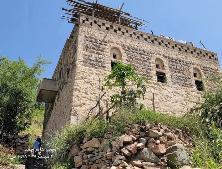 وذكروا ان الصورة هي منزل فنان اليمن الكبير أيوب طارش عبسي في قرية المحربي ظبي اعبوس مديرية حيفان محافظة تعز .