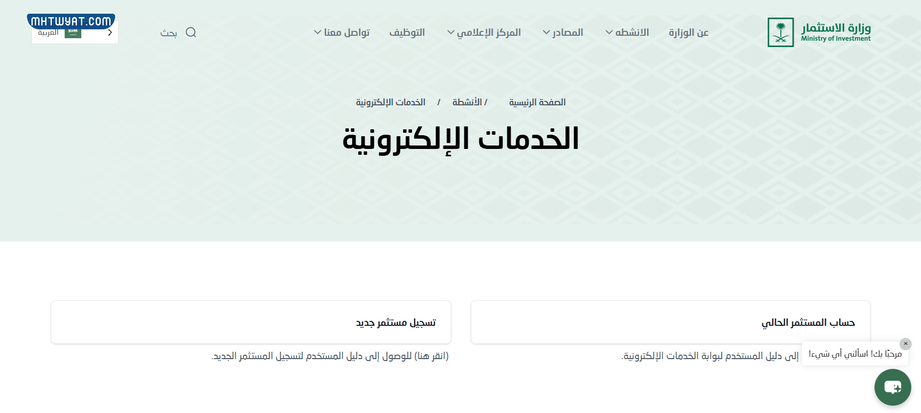 - الذهاب إلى بوابة الخدمات الإلكترونية لوزارة الاستثمار “من هنا“.