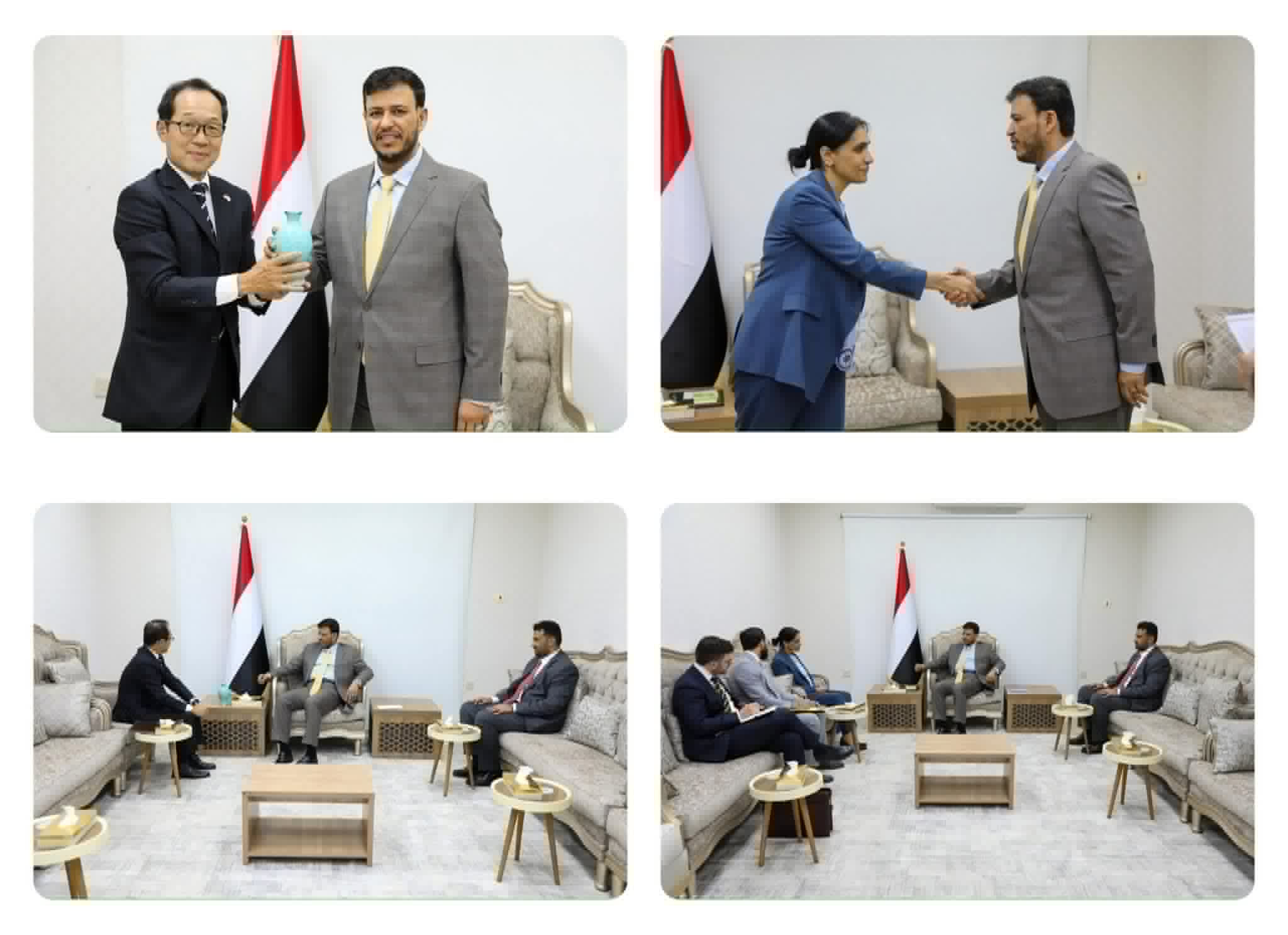 من جهتهما، أكدت السفيرة البريطانية والسفير الياباني استمرار دعم بلديهما لمجلس القيادة والحكومة اليمنية، وتعزيز التعاون المشترك خدمةً للشعب اليمني واستقراره.