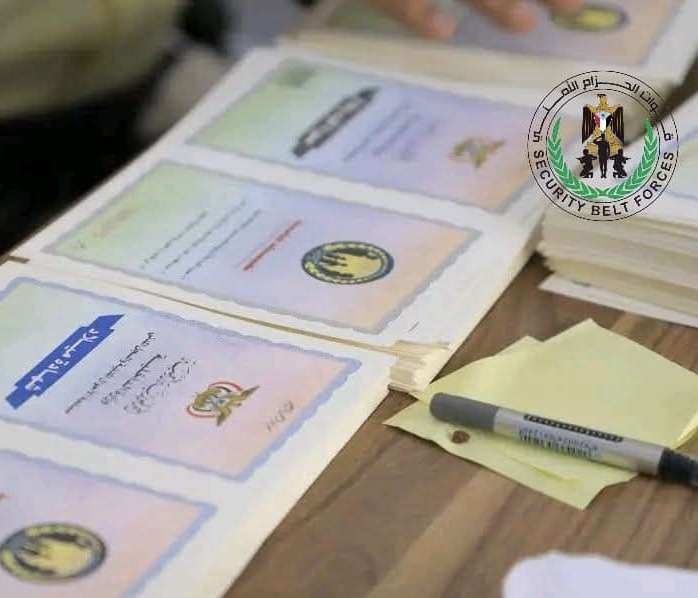 قوات الحزام الامني تضبط أوراقًا ثبوتية غير قانونية قادمة من مناطق سيطرة مليشيات الحوثي