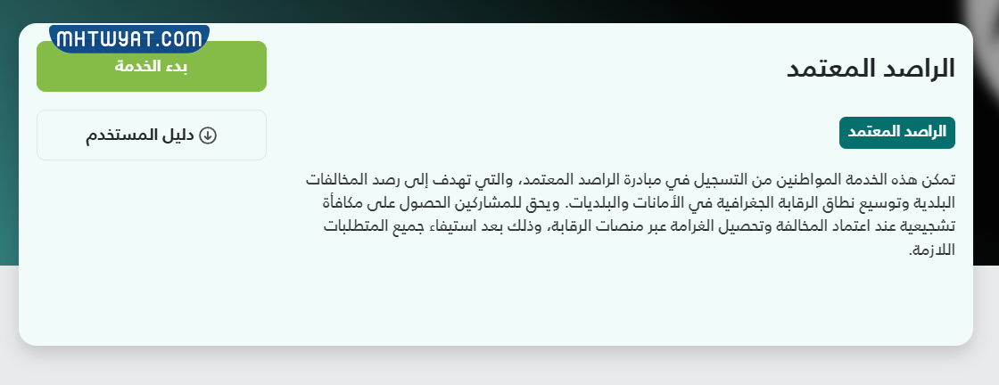 - اختيار قائمة خدمات بلدي ثم الضغط على الراصد المعتمد.