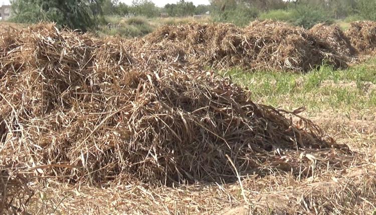 موسم جديد من إنتاج الاعلاف، هنا في اراضي دلتا تبن بمحافظة لحج، يستعد المزارعون لتصديره الى الاسواق، غير ان الإنتاج الوفير للمنتج العلفي هذا الموسم، تسبب في انخفاض اسعاره، بالتزامن مع تلف الكثير من الاعلاف، نتيجة تعرضها للأمطار بعد فترة حصادها.