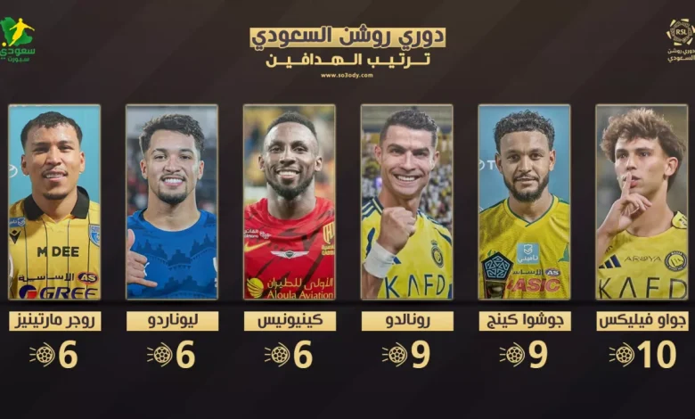 اخبار النصر السعودي : ترتيب هدافي دوري روشن بعد الجولة “8”| فيليكس في الصدارة وصراع بين رونالدو ونجم الخليج