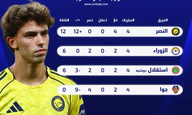 اخبار النصر السعودي : ترتيب مجموعة النصر في دوري أبطال آسيا 2 بعد الفوز على جوا الهندي برباعية