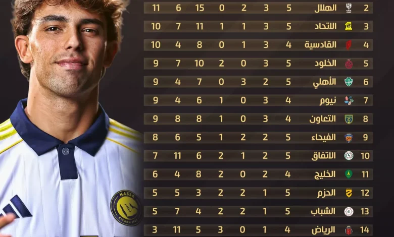 اخبار النصر السعودي : جدول ترتيب دوري روشن في الجولة الخامسة| النصر يطير بالصدارة والهلال يعود