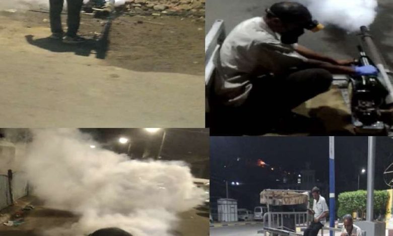اخبار عدن | قسم صحة البيئة ينفذ حملة رش ضبابي للقضاء على الحشرات الناقلة للأمراض بالمديرية