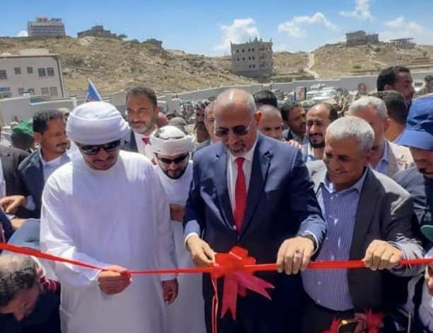 الرئيس الزُبيدي يزور مديرية الشعيب ويفتتح مجمّع الشيخ محمد بن زايد التعليمي النموذجي بمنطقة القزعة
