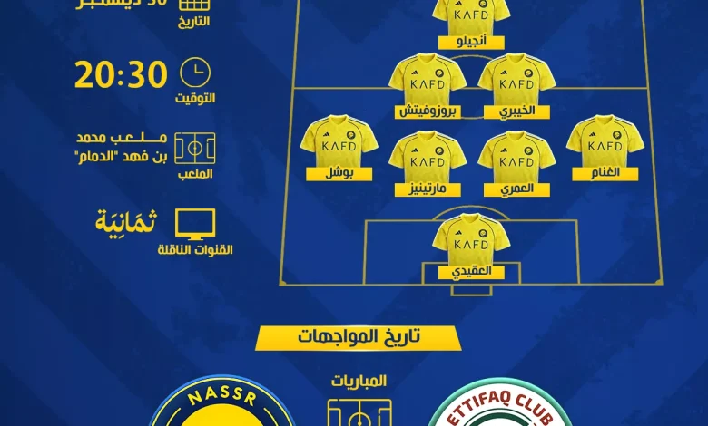اخبار النصر السعودي : شاهد تشكيلة النصر المتوقعة أمام الاتفاق .. ونسبة فوز كل فريق