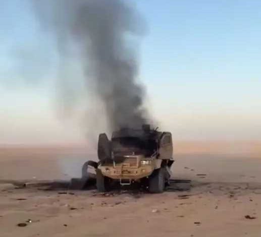 غارة جوية للتحالف تدمر مدرعة منهوبة من حضرموت في شرق مأرب