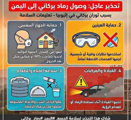 الصحة والسكان في عدن توجه هذا التحذير الهام بعد الرماد البركاني و تطلب من المواطنين الإلتزام بهذا الأمر !