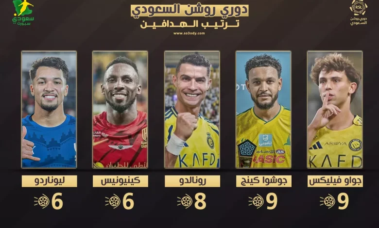 اخبار النصر السعودي : ترتيب هدافي دوري روشن بعد الجولة “7”| فيليكس في الصدارة وصراع بين رونالدو وكينج
