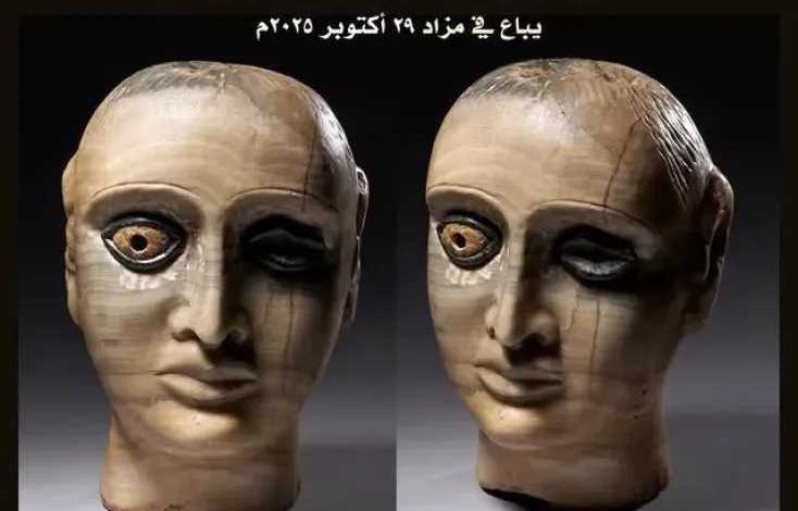 اخبار اليمن : رأس تمثال يمني معروض للبيع في مزاد علني (صورة)