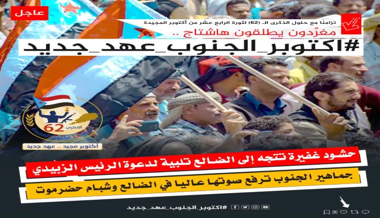 سياسيون ونشطاء جنوبيون يدعون أبناء شعب الجنوب إلى الإحتشاد بالضالع وحضرموت في ذكرى 14 أكتوبر المجيدة ويطلقون وسم #اكتوبر_موعدنا_حضرموت_والضالع