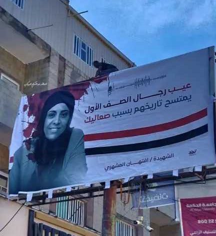 نقابة العاملين في مشروع النظافة بتعز تصدر بياناً حادّاً تنعي فيه الشهيدة ”أفتهان المشهري” وتُحمّل السلطات المحلية مسؤولية الجريمة