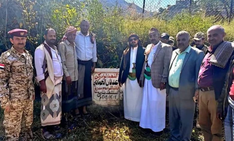شاهد الشيخ صهيب البركاني أثناء زيارته قبر الشهيد اللواء عدنان الحمادي برفقة قيادات عسكرية ومدنية