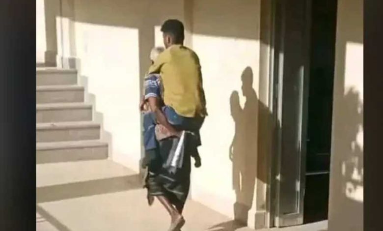 صورة مؤثرة .. أبٌّ يحمل ابنه المعاق على ظهره يوميًا ليمكّنه من مواصلة تعليمه في جامعة تعز
