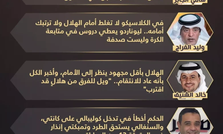 اخبار الهلال السعودي : قالوا عن فوز الهلال بكلاسيكو الاتحاد: هدايا ودروس وطرد مستحق