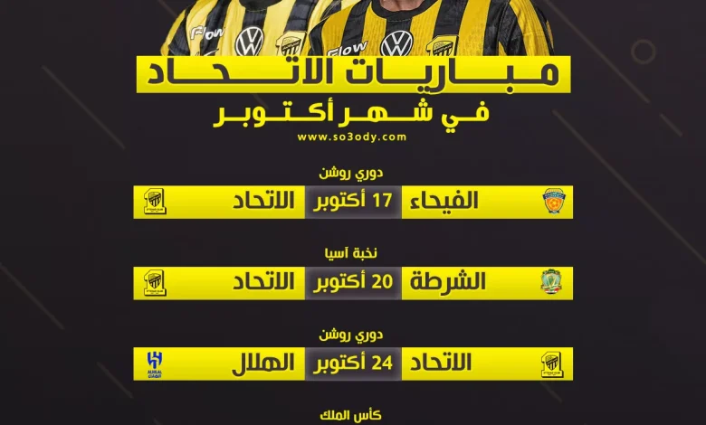 اخبار نادي الاتحاد السعودي : مباريات الاتحاد في أكتوبر | صدام مصيري في الدوري والكأس .. كلاسيكو الانتقام من النصر